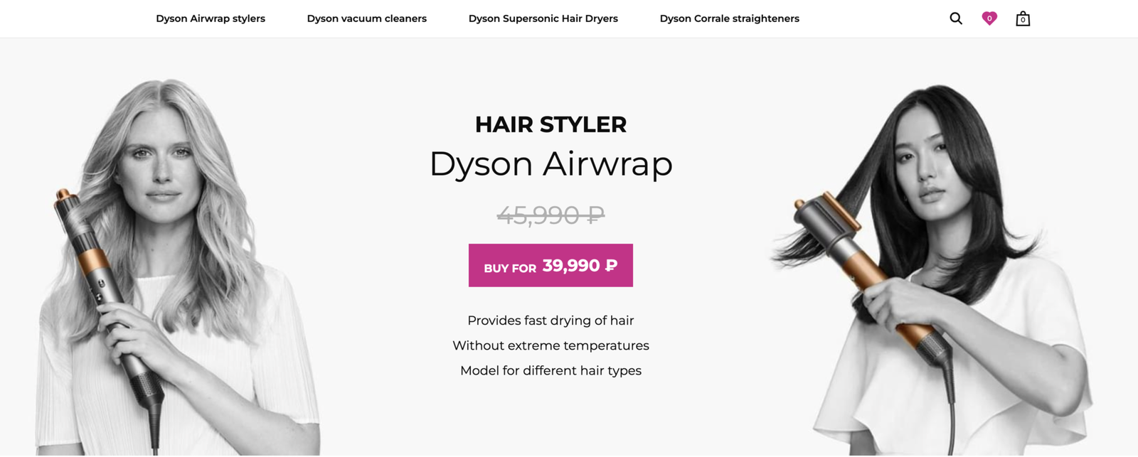 Specialized Dyson online store with a wide range of products - stylers, hair dryers, vacuum cleaners, accessories.