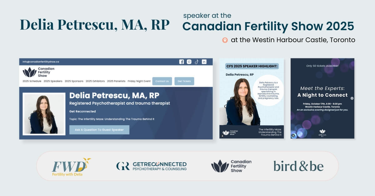Get Reconnected Psychotherapy Services is proud to announce that Delia Petrescu, MA, RP, will be a featured speaker at the Canadian Fertility Show on October 18, 2025, at the Westin Harbour Castle in Toronto.